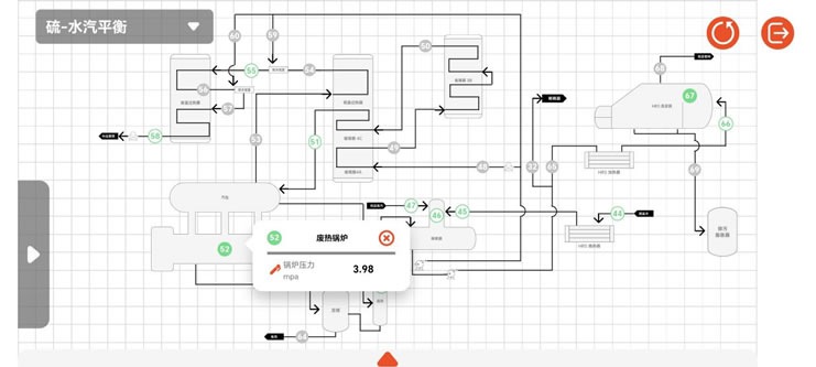 考慮到用戶在操作時常需調(diào)整多個點位,因缺少有效的狀態(tài)標(biāo)識,難以追蹤修改進度。因此我們將裝置圖上的點位狀態(tài)分為了未修改(白底綠字)、已修改(綠底白字,若修改已修改的狀態(tài)值與此前一致,將變?yōu)槲葱薷臓顟B(tài))與不可修改(灰底白字)三種狀態(tài),不再因工作臺的診斷結(jié)果而改變顏色。(見圖1.1 硫-水汽平衡圖)