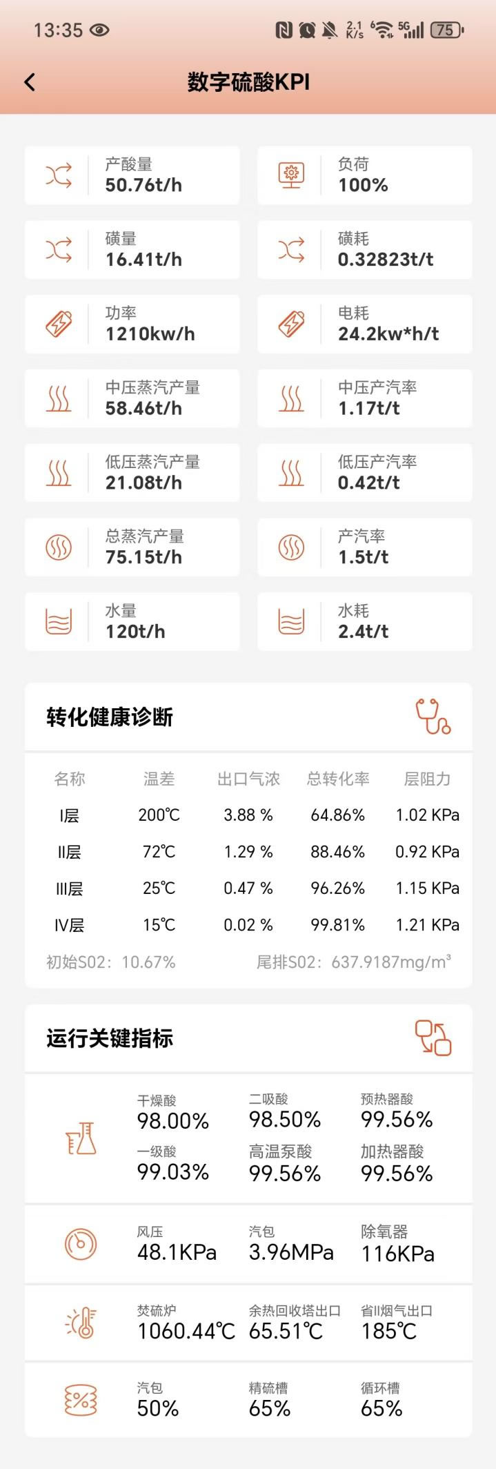 3.運行關(guān)鍵指標(biāo)展示酸濃、壓力、出口溫度、液位及其他運行數(shù)據(jù)。
