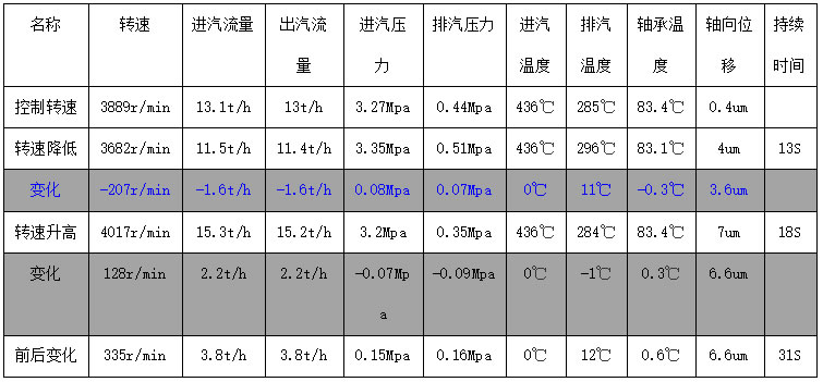 問題一分析:轉(zhuǎn)速降低,透平進(jìn)汽和出汽相應(yīng)降低,可以認(rèn)為是透平進(jìn)汽調(diào)速閥故障,但是無法解釋排汽溫度升高和轉(zhuǎn)速突然升高,透平進(jìn)汽和出汽也相應(yīng)升高,并且高過正常轉(zhuǎn)速的流量,則可排除進(jìn)汽調(diào)速閥故障。